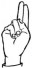 На ћирилици написано РАДНА СТЕВИЋ састоји се из 11 слова [?]. Исписано ћириличном једноручном азбуком за глувонеме: